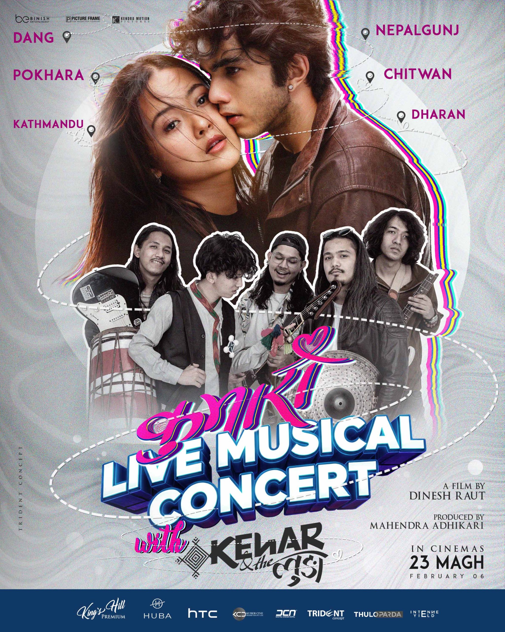 कन्सर्ट शृङ्खला अन्तर्गत माघ १ गतेदेखि २३ गतेसम्म दाङ, पोखरा, काठमाडौं, नेपालगन्ज, चितवन र धरानमा कार्यक्रम हुने तालिका सार्वजनिक गरिएको छ। यी सबै कन्सर्टमा चलचित्रका प्लेब्याक गायक केहरसिं लिम्बु र उनको ब्यान्ड ‘केहर एन्ड द लुङा’ले आफ्नो लाइभ प्रस्तुति दिनेछ। केहर र उनको ब्यान्ड युवापुस्तामाझ अत्यन्त लोकप्रिय छ। चलचित्रका गीतहरू दर्शकमाझ लोकप्रिय बन्दै गइरहेका बेला कन्सर्टले चलचित्रप्रति उत्साह अझ बढाउने अपेक्षा गरिएको छ।