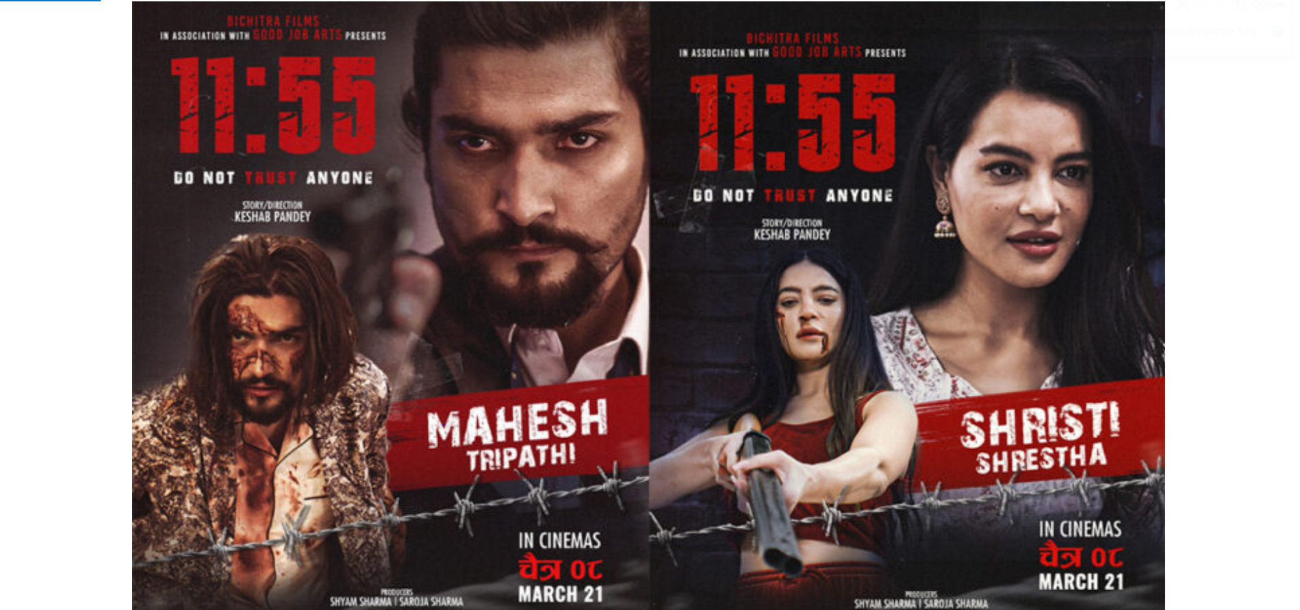 बिचित्र फिल्मस् र गुड जब आर्टस्को व्यानरमा निर्माण भएको चलचित्र ‘११ः५५’का पाँच कलाकारहरुको क्यारेक्टर लुक्स सार्वजनिक गरिएको छ ।