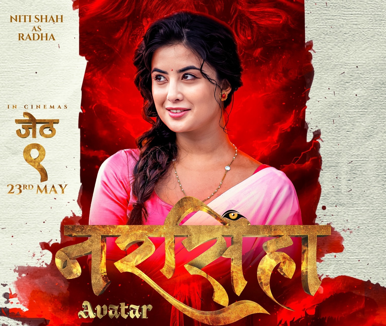 जेठको ९ गतेबाट रिलिजमा आउन लागेको फिल्म ‘नरसिंहाः अवतार’बाट नायिका नीति शाहको लुक्स सार्वजनिक गरिएको छ । सार्वजनिक फस्टलुकमा नीति मुस्कुराएकी छिन् । यो पोस्टरले उनी फिल्ममा कसैको श्रीमती वा प्रेमिकाको रुपमा देखिन लागेको वुझ्न सकिन्छ । तर, कुन पात्रसँग उनको जोडी बाँधिएको छ भन्ने खुलेको छैन ।