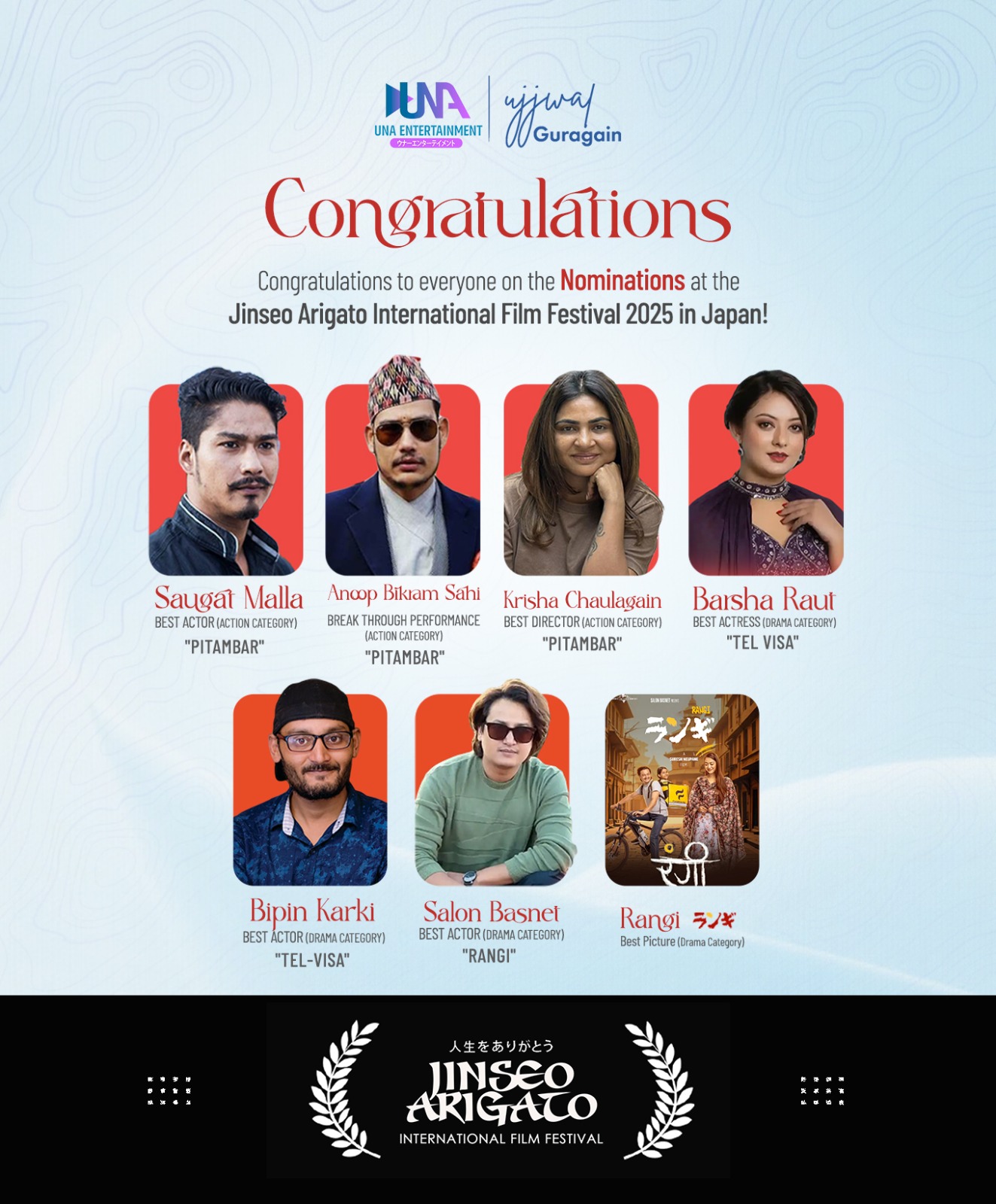 ‘जिन्सेओ एरिगाटो इन्टरनेशनल फिल्म फेस्टिभल २०२५’को नोमिनेसन सार्वजनिक