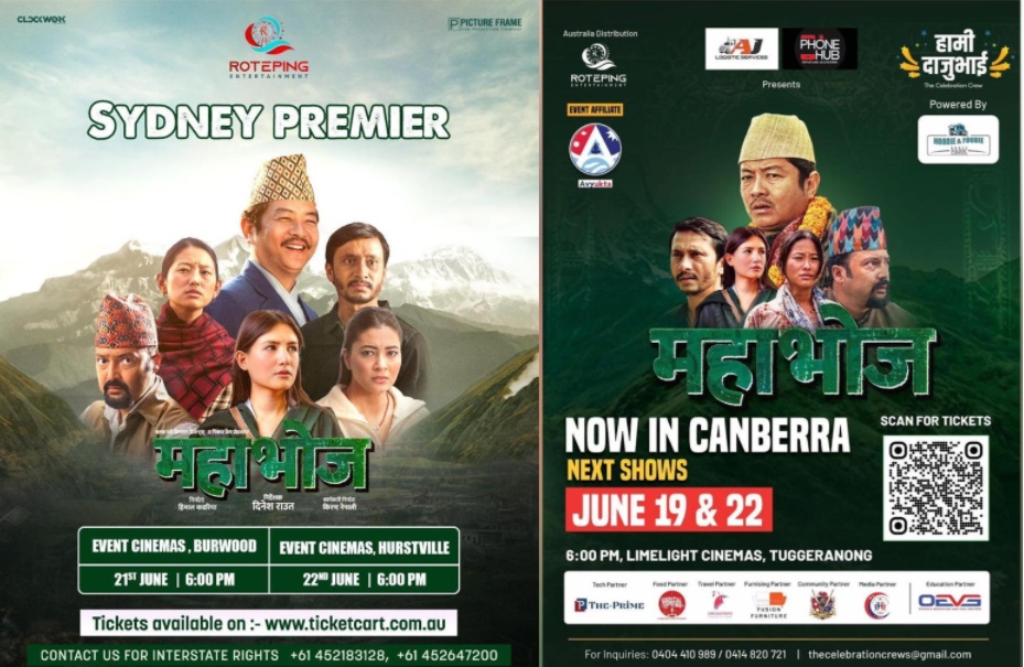 ‘महाभोज’को अस्ट्रेलिया प्रिमियर यसअघि जुन १ तारिख, शनिवार पर्थमा सम्पन्न भइसकेको छ । अब अस्ट्रेलिया वितरक रोटेपिङ इन्टरटेन्मेन्टले जुन १९ र २२ मा क्यानबेरा तथा जुन  २१ र २२ मा ब्रिसबेनका लागि प्रदर्शन तय गरेको छ । यस्तै एडिलेड, मेलबर्न र तास्मानियामा पनि नियमित प्रदर्शनको तयारी गरिरहेको छ, जसका लागि शो मितिहरू चाँडै घोषणा गरिने बताइएको छ ।